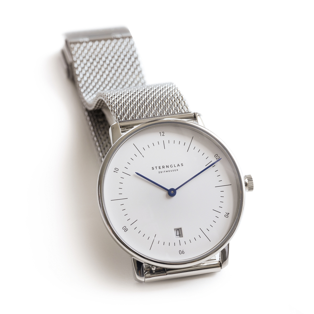 Ole Mathiesen Armbanduhr 1962 Classic 33 silbernes Armband Weiß