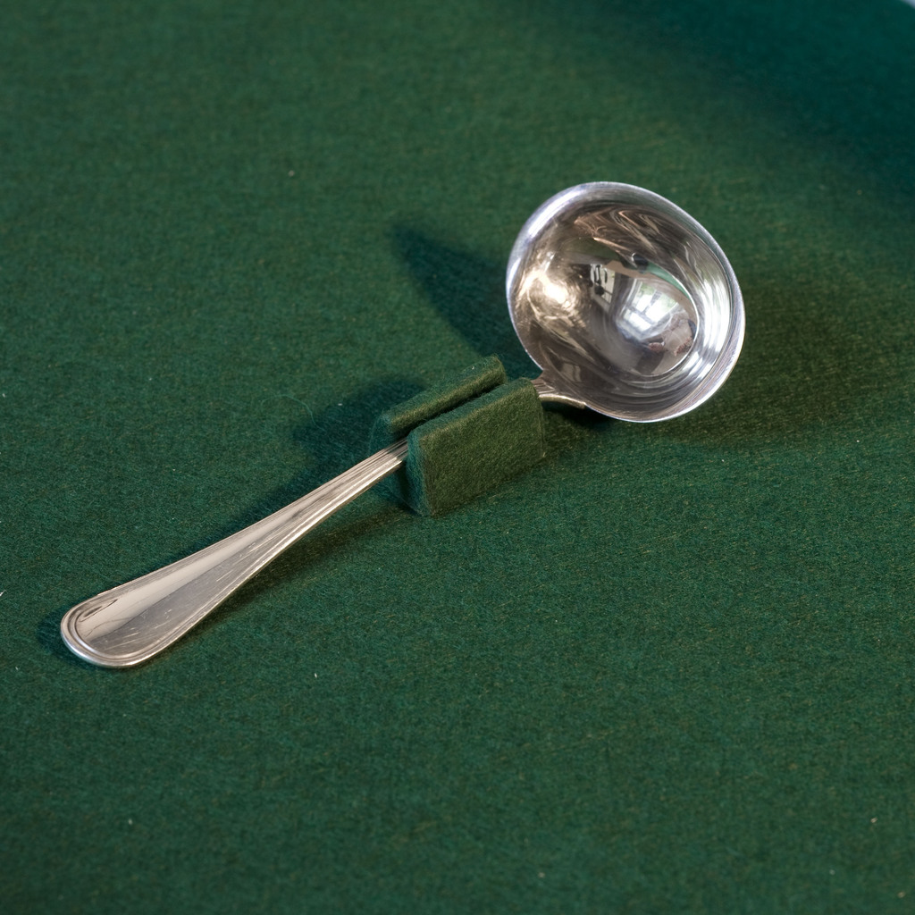 Selbstklebender Besteckhalter für 1 Suppenschöpfer oder 1 großes Vorlegeteil mit säurefreiem Anlaufschutz.