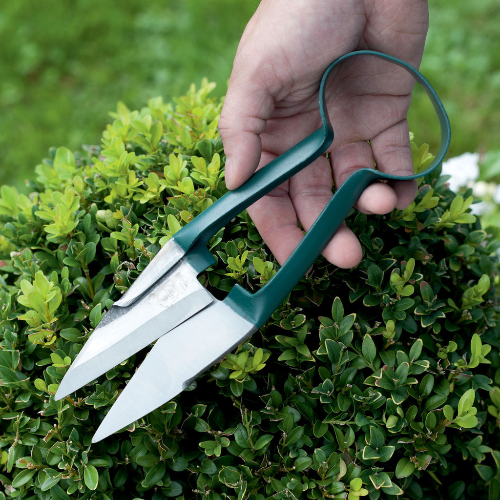 Scheren dieser Art fanden ursprünglich auf den britischen Inseln bei der Schafschur Verwendung. Die selbstschärfenden Klingen ermöglichen einen sauberen Schnitt mit geringem Krafteinsatz. Die Schere ist ideal für den Schnitt von Rasen an Kanten oder unzugänglichen Stellen, aber auch für den Formschnitt z.B. von Buchsbaum. Die Klinge ist mit 54-56 Rockwell besonders hart für langanhaltende Schärfe. Handgeschmiedet bei der seit 1730 bestehenden Sheffielder Schmiede Burgon & Ball.