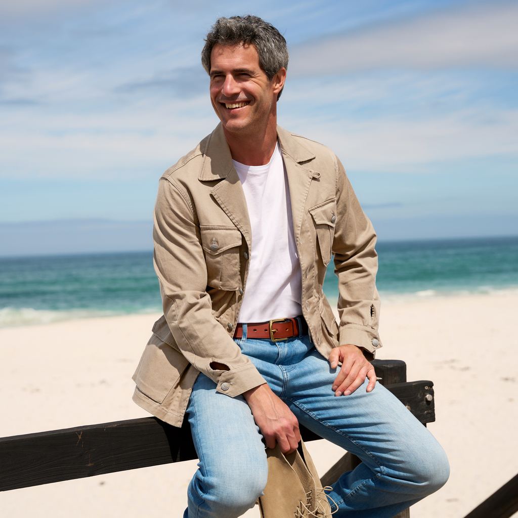 Federleichte, ungefütterte Freizeitjacke aus wunderbar glattem Baumwollpopeline für warme Frühlings- oder Sommertage. Popeline wird aus sehr feinem Garn gewebt und zeichnet sich durch eine hohe Festigkeit und angenehme Kühle aus. Im Stil angelehnt an die legendäre M-65 Field Jacket der U.S. Army von 1965 befindet sie sich mit ihrem sommerlichen Reverskragen sowie sandfarbenem Stoff aber auch ganz in der Tradition klassischer Safari-Jacken, wie sie zum Beispiel Ernest Hemingway trug. Der bequeme Schnitt erhält mit dem verstellbaren Tunnelzug eine taillierte Passform. Außerdem: vier aufgesetzte, geräumige Balgtaschen mit knöpfbaren Patten, durchgehende Knopfleiste, Ärmelmanschetten, die ein Aufkrempeln der Ärmel ermöglichen, Ösenknöpfe aus Metall.