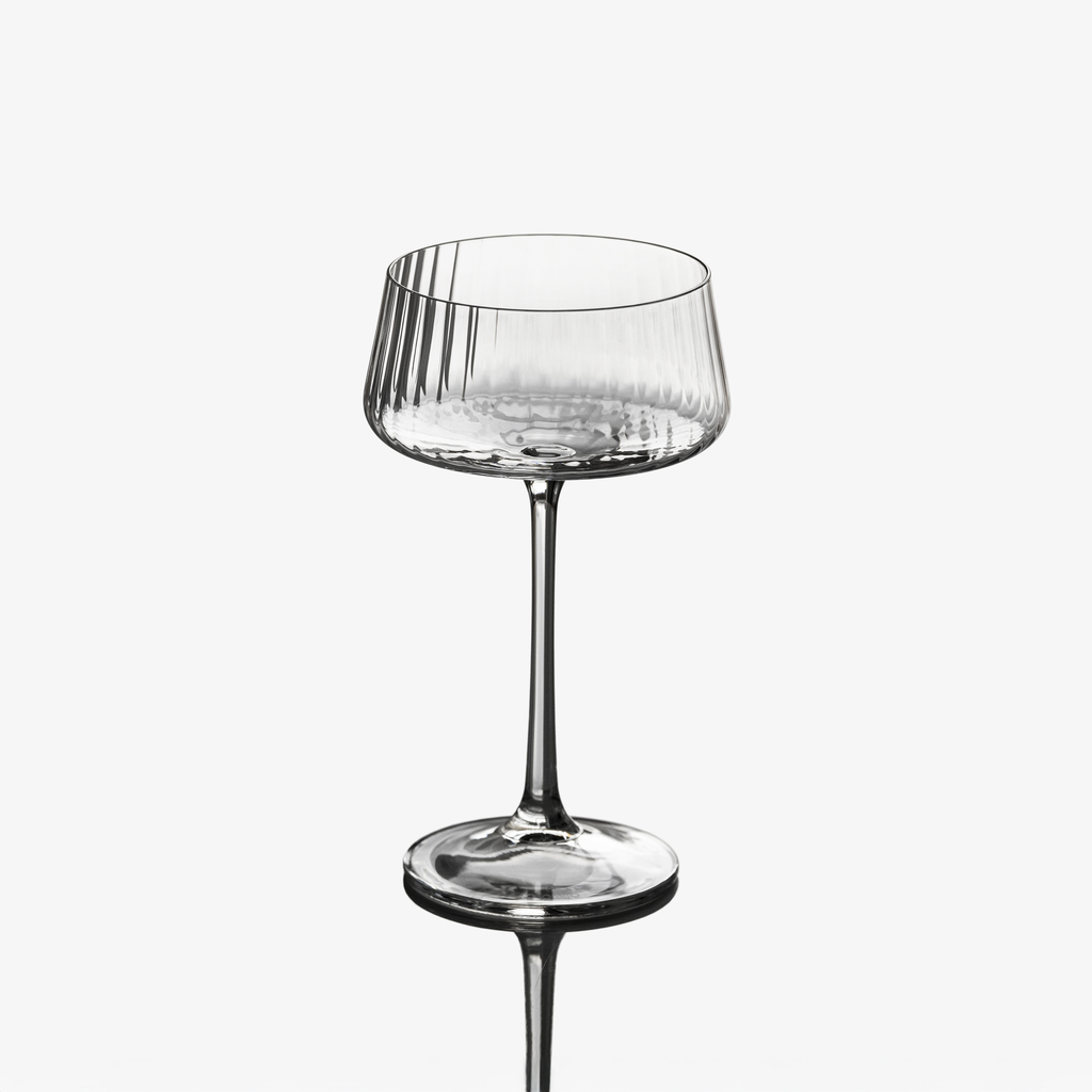 Die feine, plissierte Struktur, die an die eleganten Stofffalten der Haute Couture erinnert, verleiht dieser Gläserserie ihre besondere optische Raffinesse. Die vertikalen Linien geben den Gläsern nicht nur eine angenehme Haptik, sondern auch eine zurückhaltende Eleganz. Die Serie ermöglicht es, den Tisch – vom Wasser bis zum Cocktail – in einem einheitlichen und zugleich ausdrucksstarken Stil einzudecken.