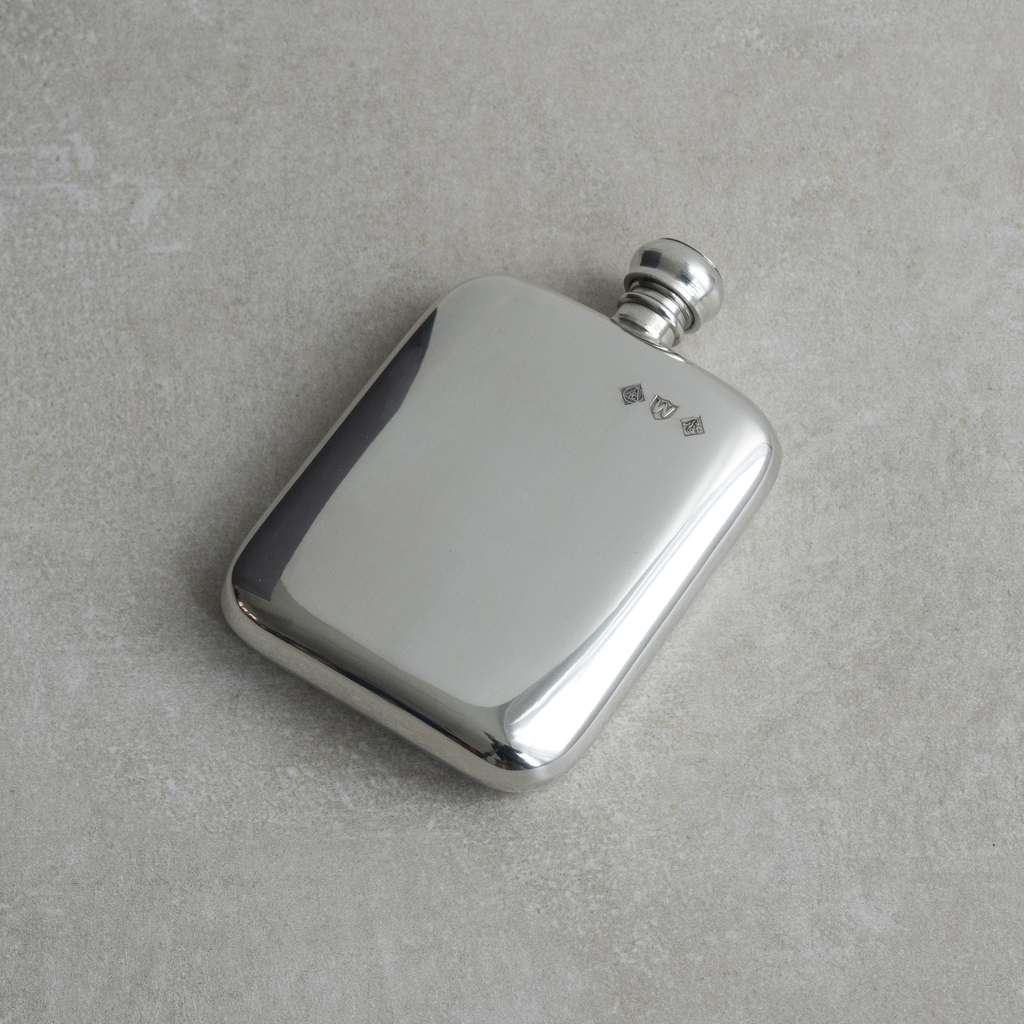 Diese Taschenflasche aus Zinn ist wirklich flach und aufgrund ihrer abgerundeten Ecken und der gewölbten Form sehr angenehm in der Tasche zu tragen. Sie wird in einem seit 1877 in Sheffield bestehenden Familienunternehmen in Handarbeit gefertigt.