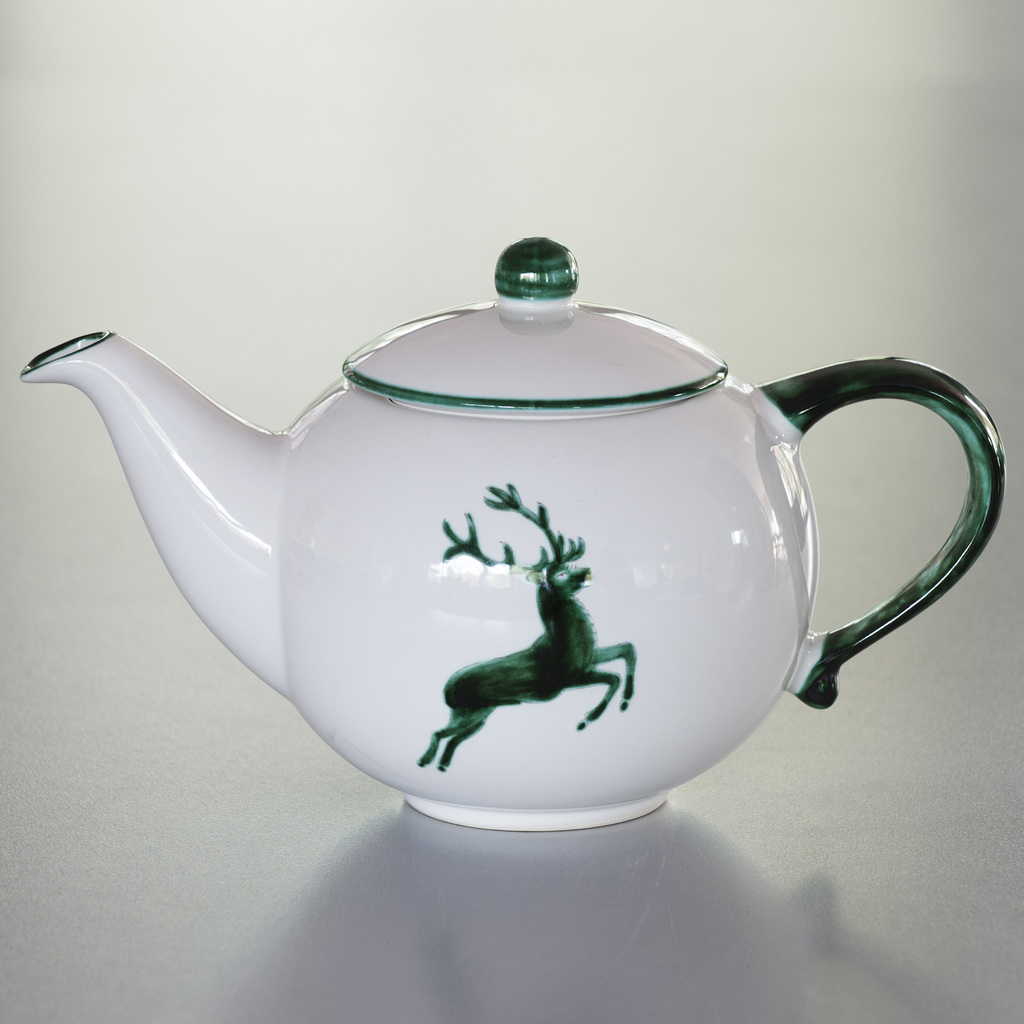Das Dekor Grüner Hirsch gibt es seit Anfang der 1950er Jahre im Programm der Gmundner Keramik aus Gmunden am Traunsee im Salzkammergut ist ein ländlich-eleganter Klasssiker. Es wurde seinerzeit für das weltberühmte Hotel "Goldener Hirsch" in Salzburg kreiert und später aufgrund großer Nachfrage für den Handel freigegeben.