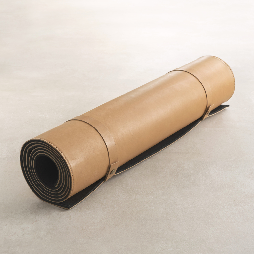 Diese Yogamatte ist ein einzigartiges Handwerksprodukt – und das Ergebnis unserer Zusammenarbeit mit der Kölner Lederwarenmanufaktur von Christoph Hack. Die Oberseite der Matte besteht aus naturbelassenem Orthopädieleder vom Rind: Vorrangig wird diese Art Leder zur Herstellung von Medizinprodukten verwendet und ist entsprechend explizit für den regelmäßigen Kontakt mit der menschlichen Haut vorgesehen. Das Leder fasst sich ausgesprochen weich und angenehm an.
