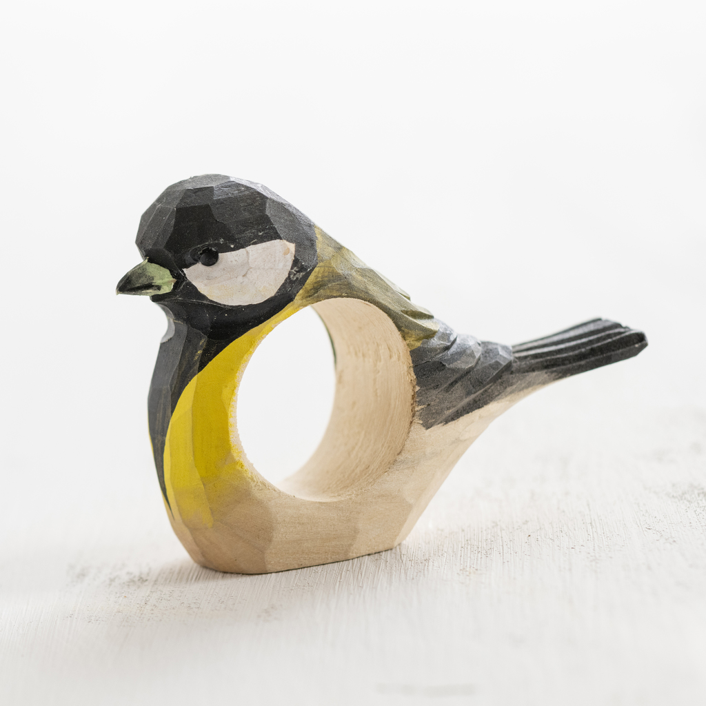 Von Hand aus Lindenholz geschnitzte und bemalte Serviettenringe in Form heimischer Vogelarten. Jeder Ring ist ein manuell hergestelltes Einzelstück, so dass kleinere Abweichungen völlig normal sind.