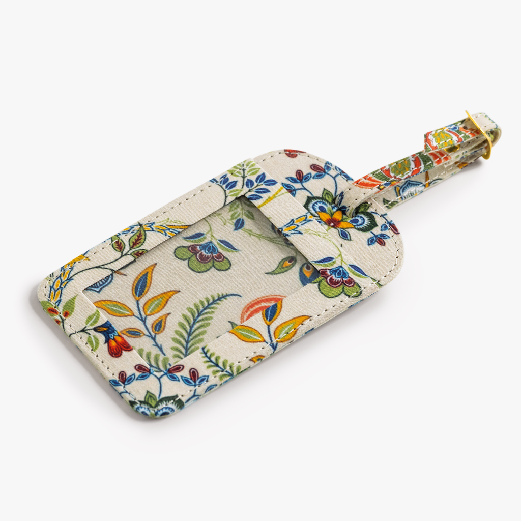 Sie suchen mal wieder Ihren Koffer? Diese Gepäckanhänger besitzen dank ihrem floralen Muster einen hohem Wiedererkennungswert an der Gepäckausgabe. Bezug aus 100 % Baumwolle mit Blumen-Alloverprint, weiches Velours-Futter, Riemchen mit Messingschnalle. 11,5 x 7 cm, Kunststofffenster 6,8 x 4,7 cm.