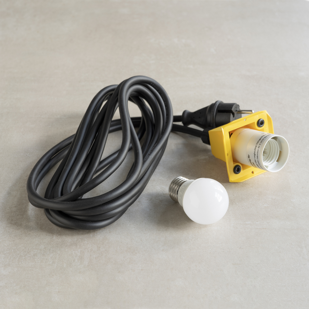 Schraubfassung mit Kabel zur Beleuchtung der Kunststoffsterne und zum Anschluss an die Steckdose. Geeignet für die gelbe Variante. Diese Leuchte ist geeignet für Leuchtmittel der Energieklassen A (höchste) bis G (niedrigste) und wird mit einem Leuchtmittel der Klasse F verkauft.