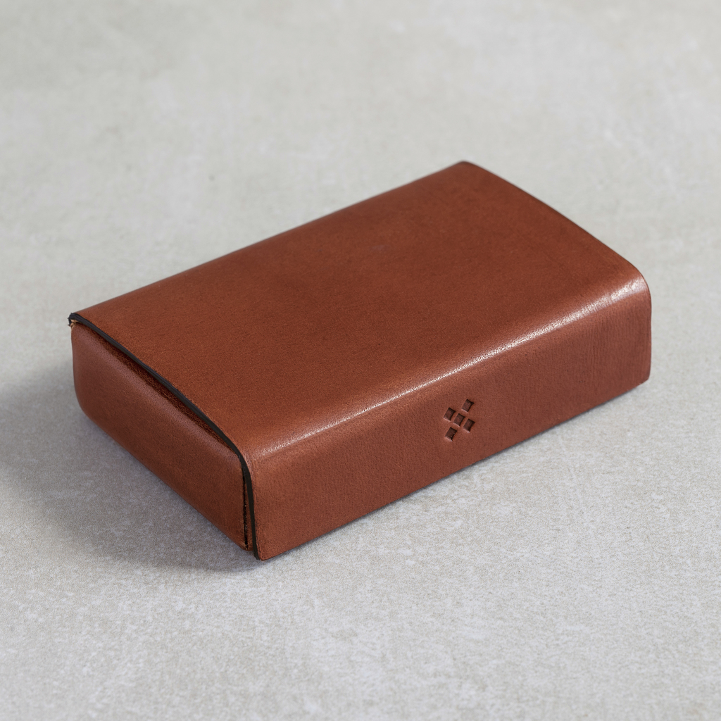 Die Etuis werden aus einem einzigen Stück Sattelleder vom Rind gefertigt, dessen Kanten nicht vernäht, sondern nur mit Lederklebstoff fest verbunden sind. Die natürliche Oberflächenstruktur des Leders kommt ohne deckenden Farbauftrag aus, kann dafür aber Falten, Narben und unterschiedliche Farbnuancen zeigen, wie es für ein Naturprodukt völlig selbstverständlich ist.Innen mit weichem Futterleder ausgeschlagen. Versteckter Magnetverschluss. Mit einer schützenden Wachsschicht behandelt, die bei Bedarf abpoliert werden kann.
