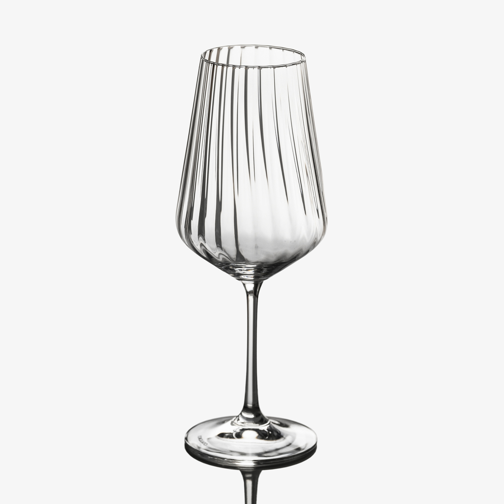 Die feine, plissierte Struktur, die an die eleganten Stofffalten der Haute Couture erinnert, verleiht dieser Gläserserie ihre besondere optische Raffinesse. Die vertikalen Linien geben den Gläsern nicht nur eine angenehme Haptik, sondern auch eine zurückhaltende Eleganz. Die Serie ermöglicht es, den Tisch – vom Wasser bis zum Cocktail – in einem einheitlichen und zugleich ausdrucksstarken Stil einzudecken.