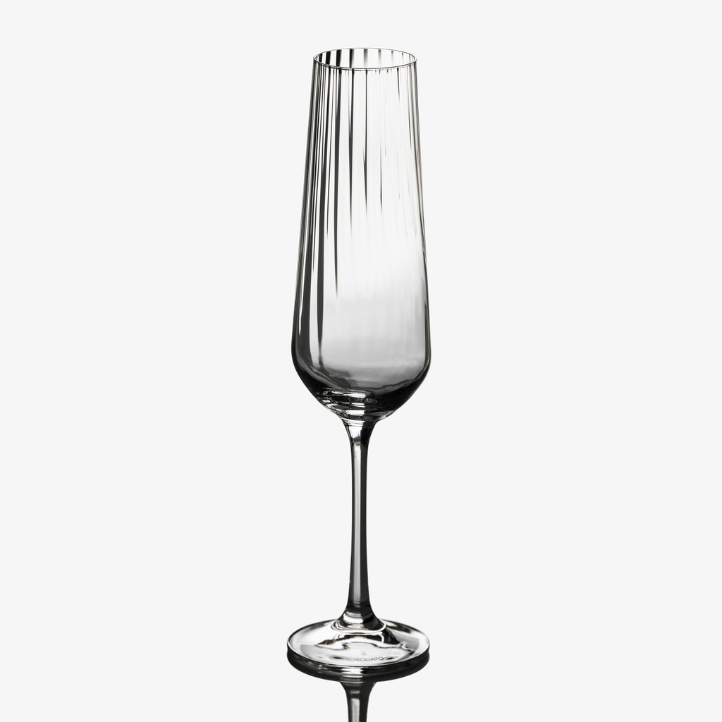 Gefertigt aus hochwertigem Kristallglas, zeichnen sich die Gläser durch ihre hohe Klarheit und einen feinen Klang aus. Die präzise und gleichmäßige Rillenstruktur zeugt von der hohen Güte der Verarbeitung.
