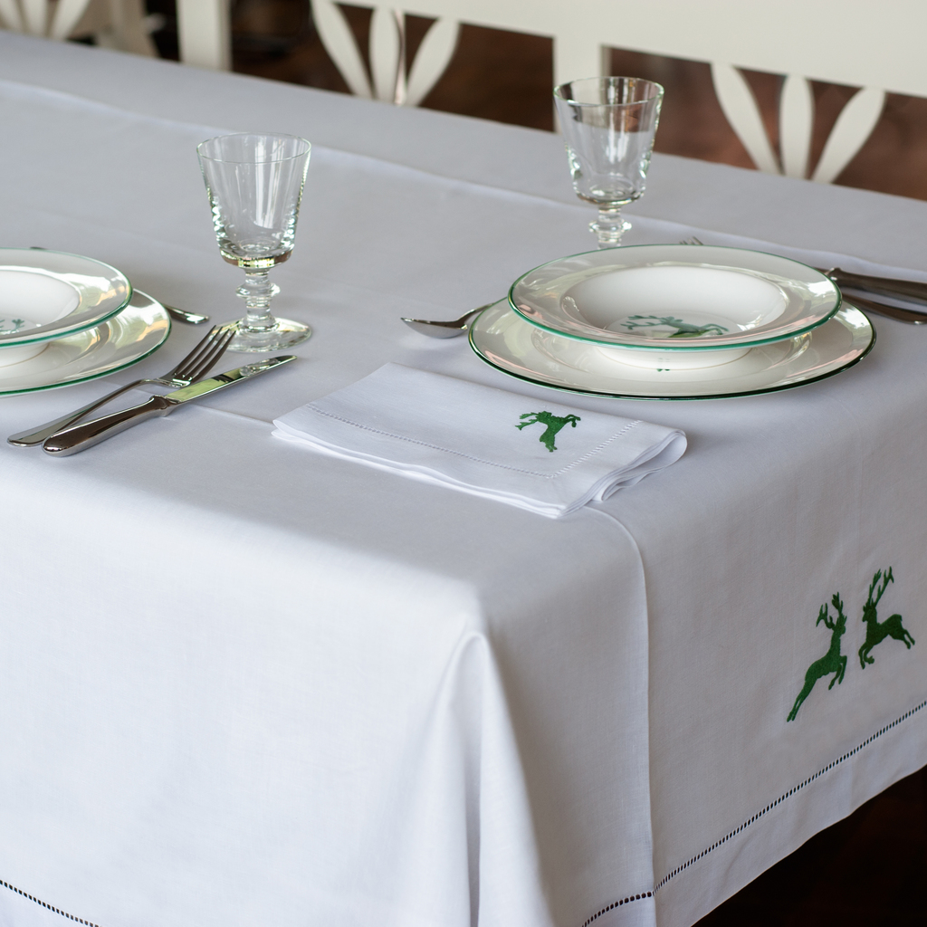 Tischwäsche Hirsch Leinen Tischdecke Grüner Hirsch