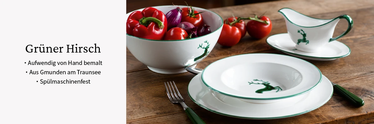 Grüner Hirsch Teller Sauciere
