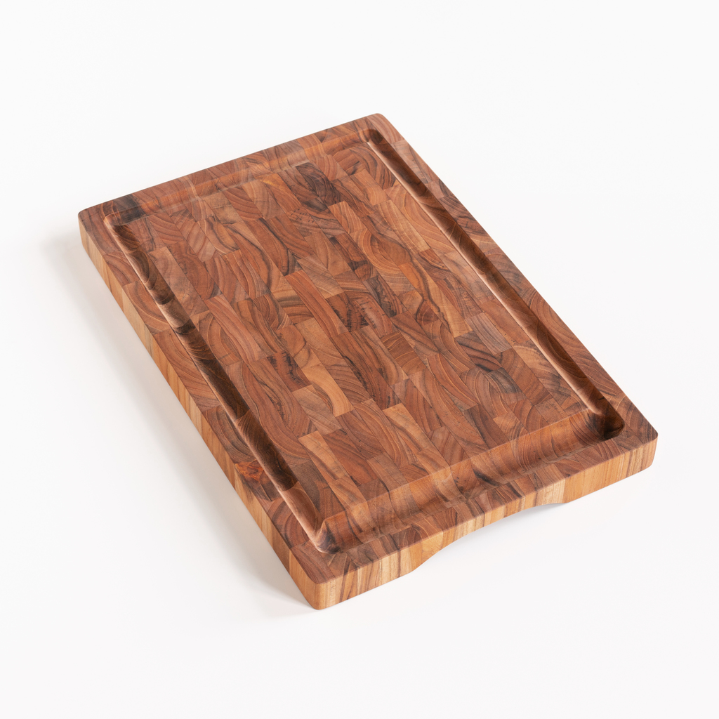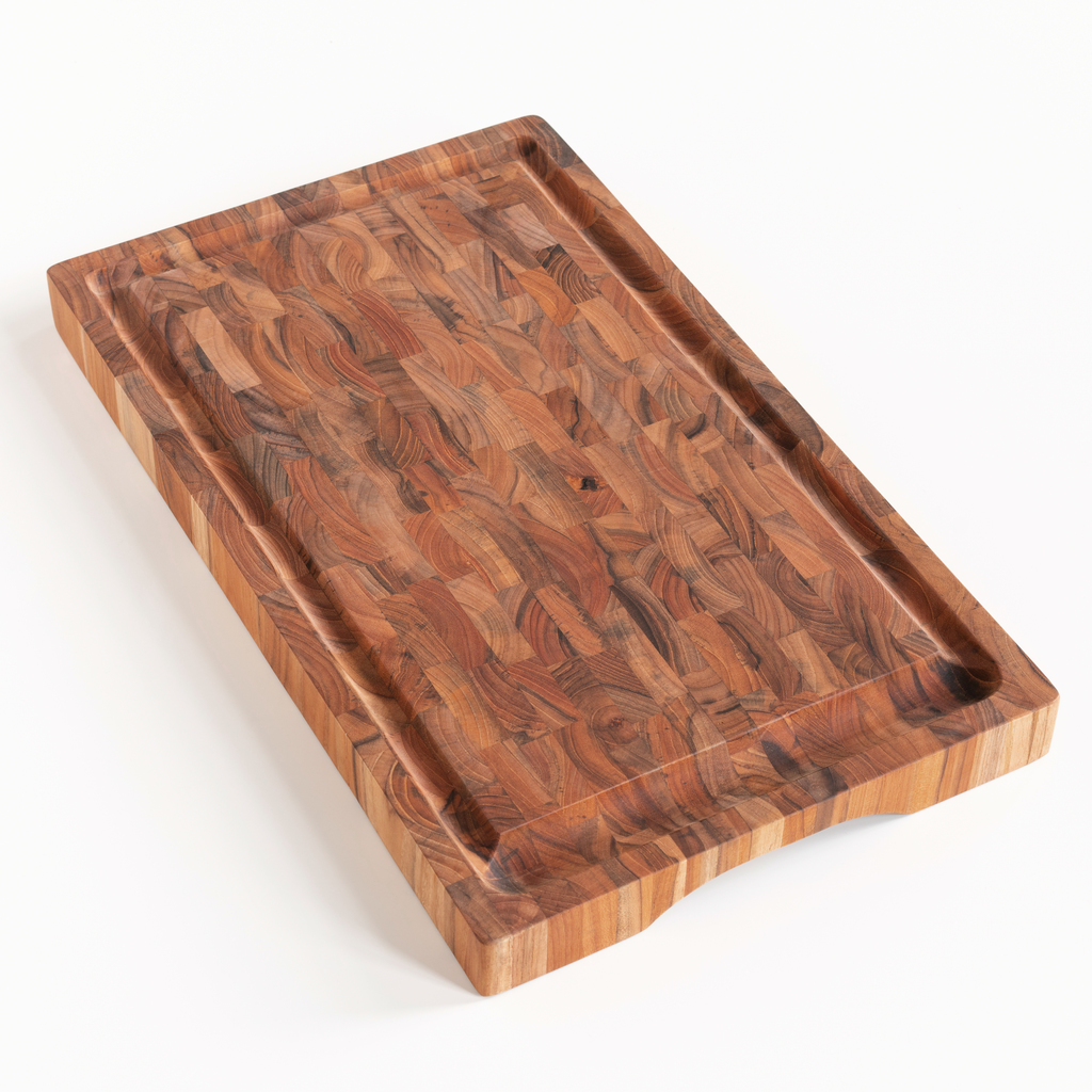 Tranchierbrett mit Saftrinne aus Teak Hirnholz Groß