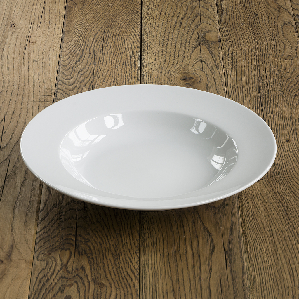 Die breite Fahne dieses Pastatellers, also der Rand rund um die eigentliche Tellermulde, sorgt dafür, dass Sie ihn auch im vorgewärmten Zustand sicher greifen und leicht und schnell zum Tisch bringen können. Durch seine Größe ist er außerdem für beide Möglichkeiten, Pasta zu servieren, gleichermaßen geeignet: Als Primo Piatto für kleinerer Portion oder auch für eine Hauptmahlzeit.