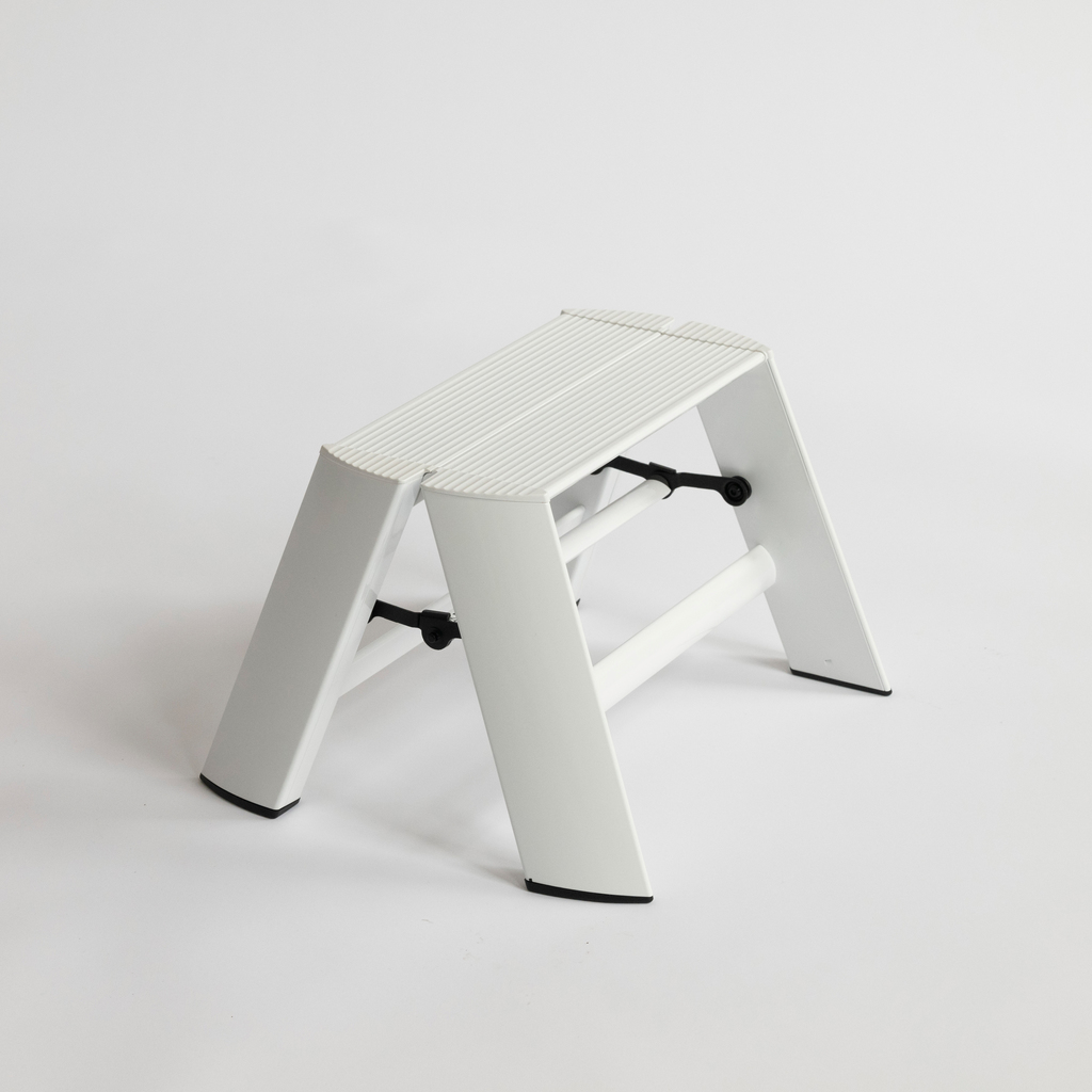 Diese Trittleitern wurden explizit zur Verwendung in Wohnräumen entworfen, z. B. als Bibliotheksleiter. Mit ihrer reduzierten Form sind sie nicht nur bloßer Gebrauchsgegenstand, sondern auch praktisches Designobjekt. Mit dem Red Dot Design Award und dem japanischen Good Design Award ausgezeichnet. Aluminium und ABS-Kunststoff, pulverbeschichtet.
