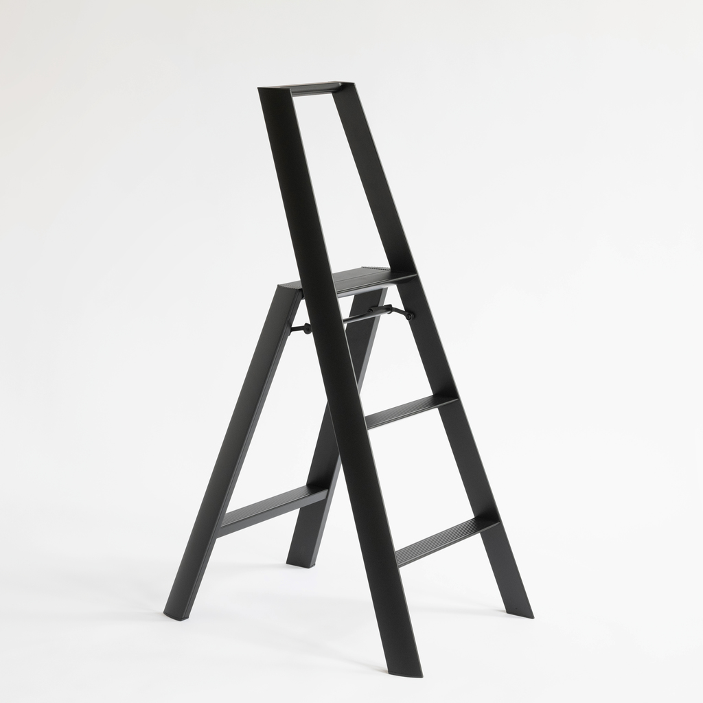 Diese Trittleitern wurden explizit zur Verwendung in Wohnräumen entworfen, z. B. als Bibliotheksleiter. Mit ihrer reduzierten Form sind sie nicht nur bloßer Gebrauchsgegenstand, sondern auch praktisches Designobjekt. Mit dem Red Dot Design Award und dem japanischen Good Design Award ausgezeichnet. Aluminium und ABS-Kunststoff, pulverbeschichtet.