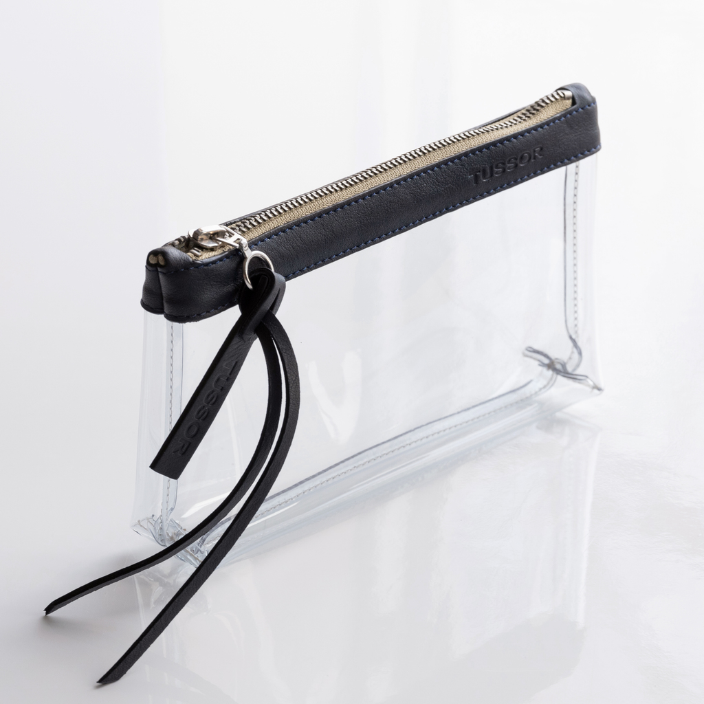 Transparente Kulturtaschen für bestmögliche Übersicht über die mitgeführten Utensilien, sodass sie sich auch für die Mitnahme im Handgepäck beim Fliegen eignen. Die Taschen sind aus 1 mm starkem, UV-beständig behandeltem und vernähtem PVC hergestellt. Ein schönes Detail ist der in Leder ausgeführte Besatz an der Oberseite, der auch den Reißverschluss einfasst. 1 mm starke Schweißnähte für hohe Belastbarkeit und lange Lebensdauer. Aus einem Atelier im Beaujolais, das in klassischer Täschnerarbeit Accessoires aus Textilien, Leder und technischen Materialien produziert.