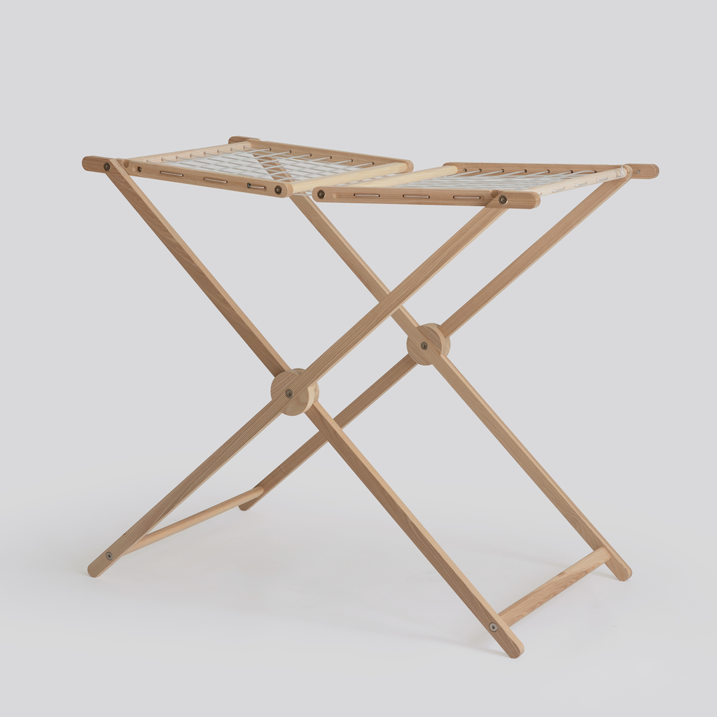 Hervorragend verarbeiteter standfester Wäscheständer. Aus massivem unbehandeltem Eschenholz in einer Rosenheimer Behindertenwerkstatt gefertigt. Die Länge der kunststoffummantelten Leine beträgt insgesamt 14 Meter. Maße offen: Länge 184cm, Breite 63cm, Höhe 86cm. Maße geschlossen: Höhe 139cm, Breite 63cm,
