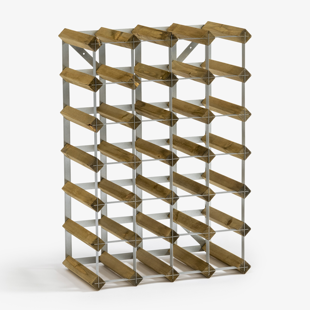 Mit diesem Regalsystem kann man seinen Weinkeller bei 12 Flaschen beginnen und unbegrenzt modular erweitern. Durch die Metallverstrebungen an Vorder- und Rückseite ist die Konstruktion sehr stabil – sogar, wenn man viele „Stockwerke“ übereinander baut. Die Module werden bereits fertig zusammengesetzt geliefert.