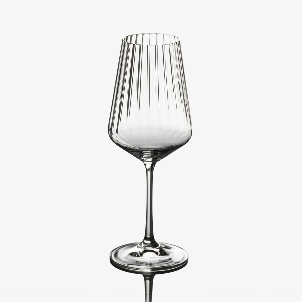Gefertigt aus hochwertigem Kristallglas, zeichnen sich die Gläser durch ihre hohe Klarheit und einen feinen Klang aus. Die präzise und gleichmäßige Rillenstruktur zeugt von der hohen Güte der Verarbeitung.
