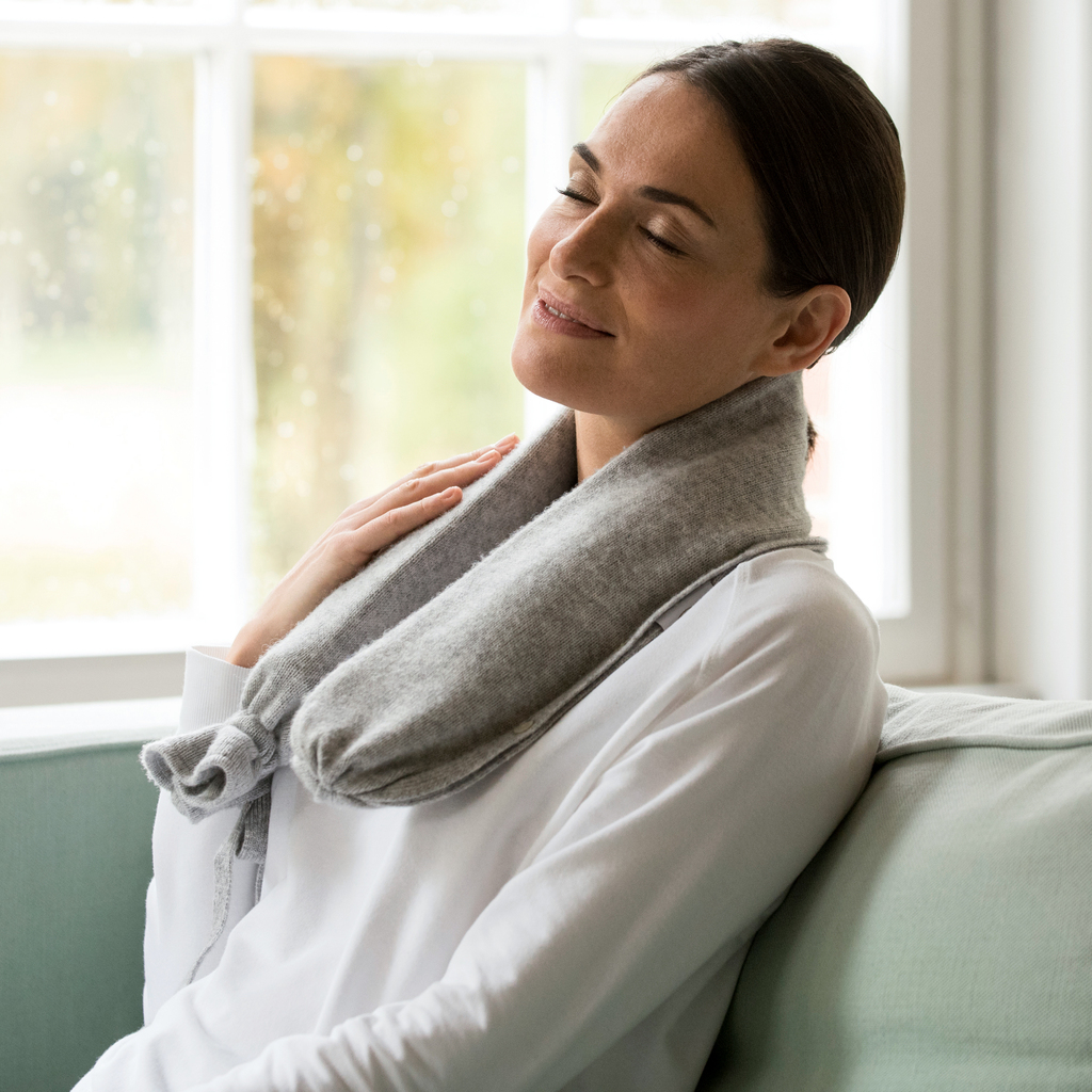 Wärmflaschen sind meist klein und wärmen nur an einer Stelle. Sofern man nicht still sitzt oder liegt, bleiben sie außerdem selten dort, wo man ihre Wärme haben möchte. Genau diesem Mangel entspringt die Idee für die YUYU Bottle, die mit einer Länge von nahezu einem ganzen Meter einen deutlich größeren Bereich bis zu 6 Stunden lang mit angenehmer Wärme versorgt. Zudem lässt sich die YUYU Bottle mit Bändern zu einem Ring binden und dadurch freihändig dort in Position halten, wo die Wärmewirkung benötigt wird: über den Schultern, um den Nacken oder um die Taille. Die YUYU Bottle eignet sich daher nicht nur für Bett und Sofa, sondern auch zum gezielten Wärmen bei Verspannungen und zur Erholung nach Belastungen. Hülle mit Zugband, Wärmflasche aus Naturkautschuk (Länge 81 cm).