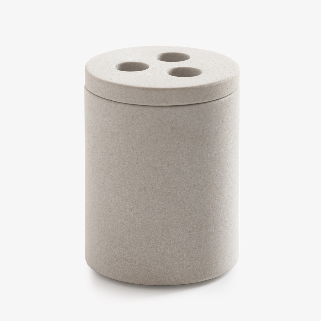 Abnehmbarer Deckel mit Öffnungen für drei Zahnbürsten.