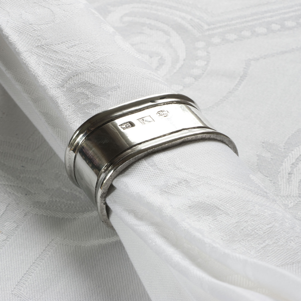 Serviettenringe aus Zinn sind eine überzeugende Alternative zu solchen aus Silber. Sie lassen sich auch bestens gravieren. Aufgrund des niedrigeren Materialpreises von Zinn werden Zinnringe auch häufig verwendet, wenn man mehrere benötigt, z.B. für die ganze Großfamilie oder als "Zweitringe" im Ferienhaus. Aus Italien.